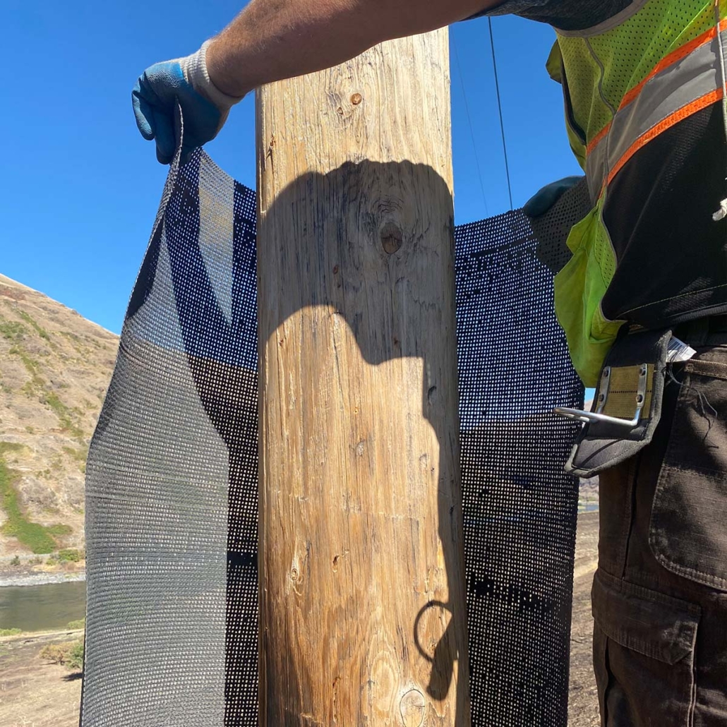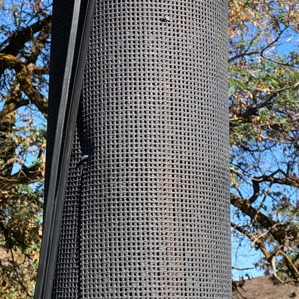 Alamon installs fire wrap / fire mesh engineered fiberglass and resin pole protection systems to help preserve structural integrity during ground fire exposure.